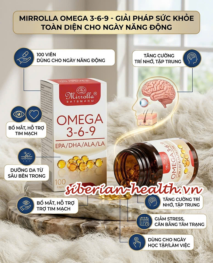 Giữa hàng ngàn dòng thực phẩm chức năng hỗ trợ sức khỏe, Omega 3-6-9 Mirrolla Nga nổi lên như một "hiện tượng" nhờ sự kết hợp hoàn hảo giữa chất lượng nội địa Nga khắt khe và giá thành cực kỳ bình dân. Bạn đang tìm kiếm giải pháp cho đôi mắt khô mỏi, trí nhớ suy giảm hay làn da bắt đầu xuất hiện dấu hiệu lão hóa? Bài viết này sẽ mổ xẻ tất tần tật về "viên ngọc vàng" từ xứ sở Bạch Dương này.
