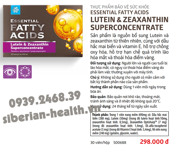 Thực phẩm bảo vệ sức khỏe Essential fatty acids Lutein & zeaxanthin superconcentrate