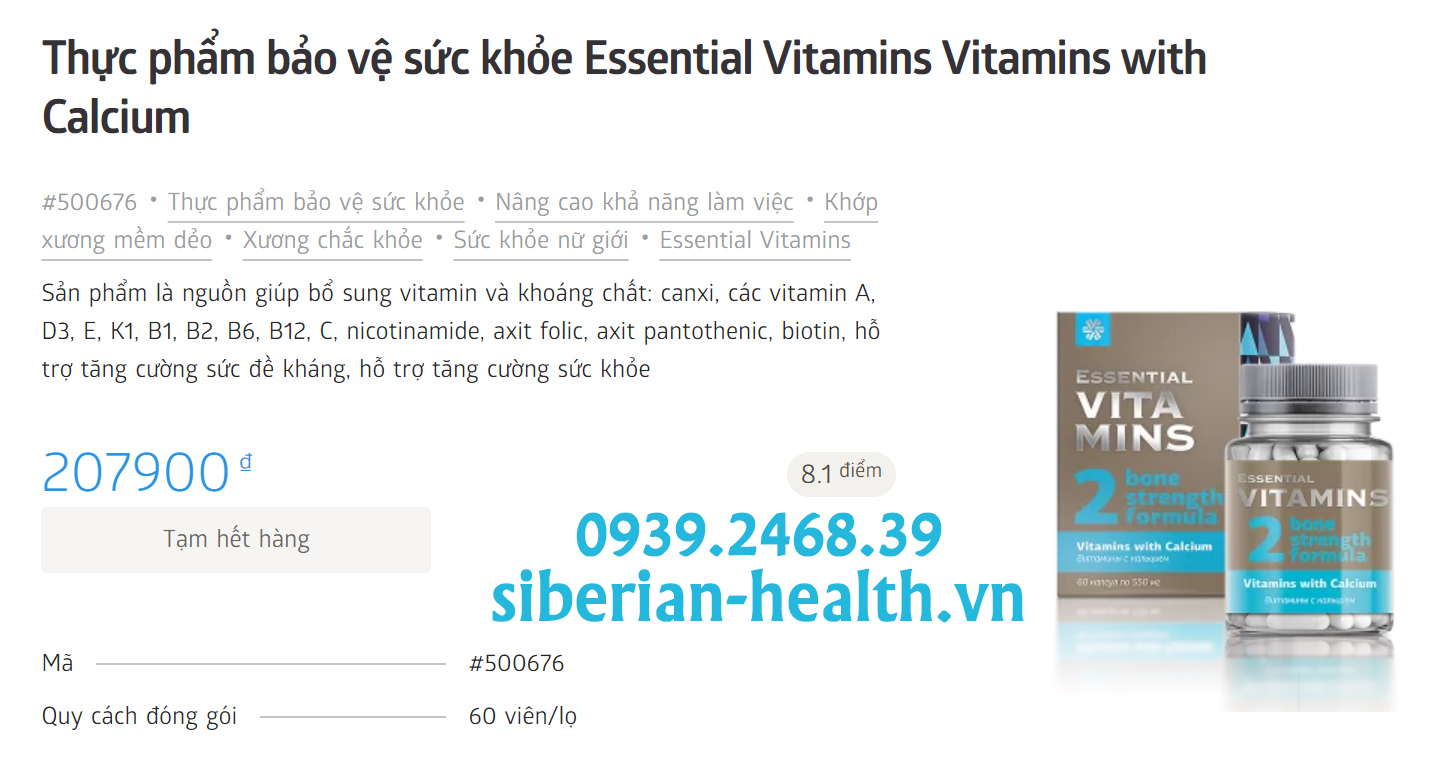 Sản phẩm là nguồn giúp bổ sung vitamin và khoáng chất: canxi, các vitamin A, D3, E, K1, B1, B2, B6, B12, C, nicotinamide, axit folic, axit pantothenic, biotin, hỗ trợ tăng cường sức đề kháng, hỗ trợ tăng cường sức khỏe.