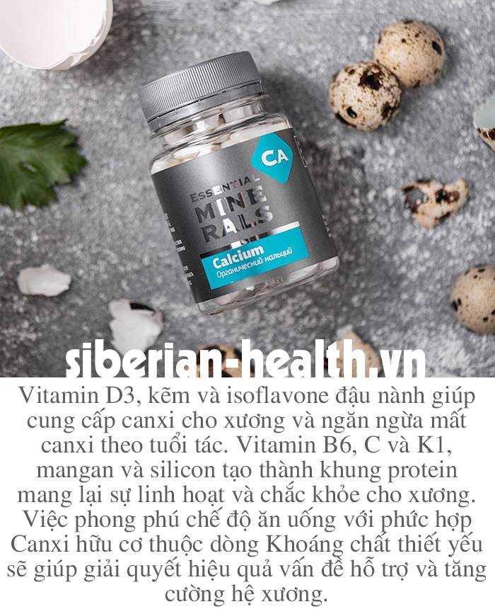 Canxi của SIBERI là loại canxi hữu cơ, được sản xuất hoàn toàn từ thảo mộc vùng Siberia của Nga. Canxi hữu cơ sẽ hiệu quả và an toàn cho sức khoẻ, giúp cơ thể hấp thụ và tránh gây ra hiện tượng lắng đọng tại thận và các bệnh nguy hiểm khác.