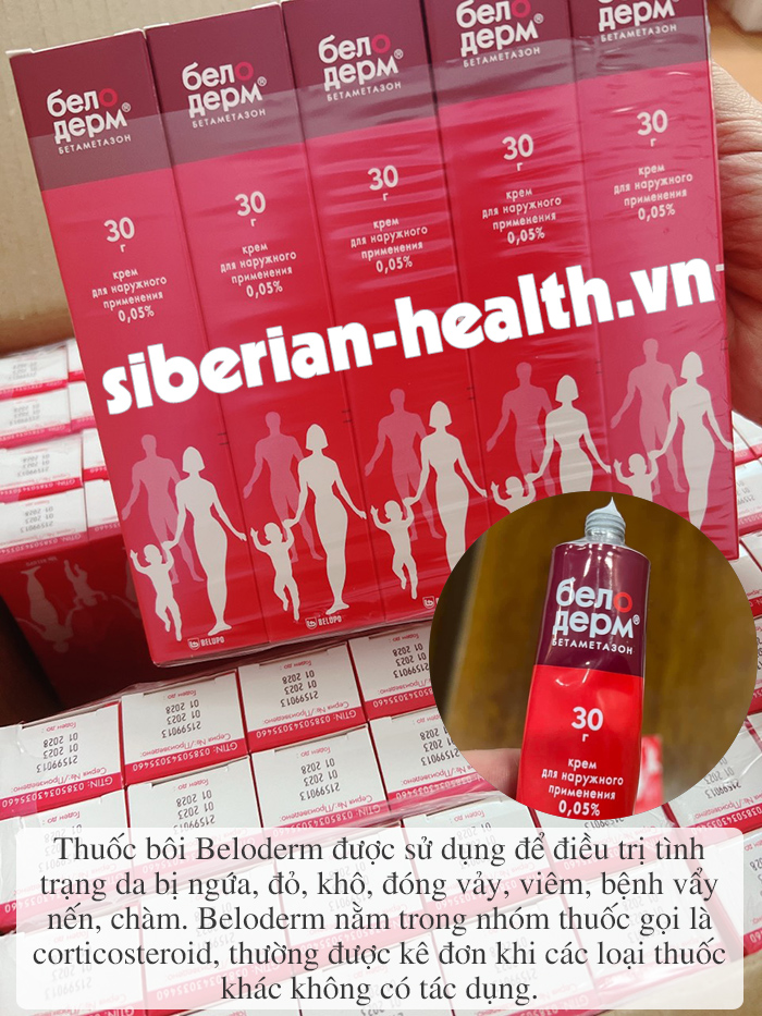 Thuốc bôi Beloderm được sử dụng để điều trị tình trạng da bị ngứa, đỏ, khô, đóng vảy, viêm, bệnh vẩy nến (một bệnh ngoài da trong đó các mảng đỏ, có vảy hình thành trên một số vùng của cơ thể) và bệnh chàm (một bệnh ngoài da khiến da bị khô, ngứa và đôi khi phát ban đỏ, có vảy). Beloderm nằm trong nhóm thuốc gọi là corticosteroid. Nó hoạt động bằng cách kích hoạt các chất tự nhiên trong da để giảm sưng, tấy đỏ và ngứa, kích ứng, đau.