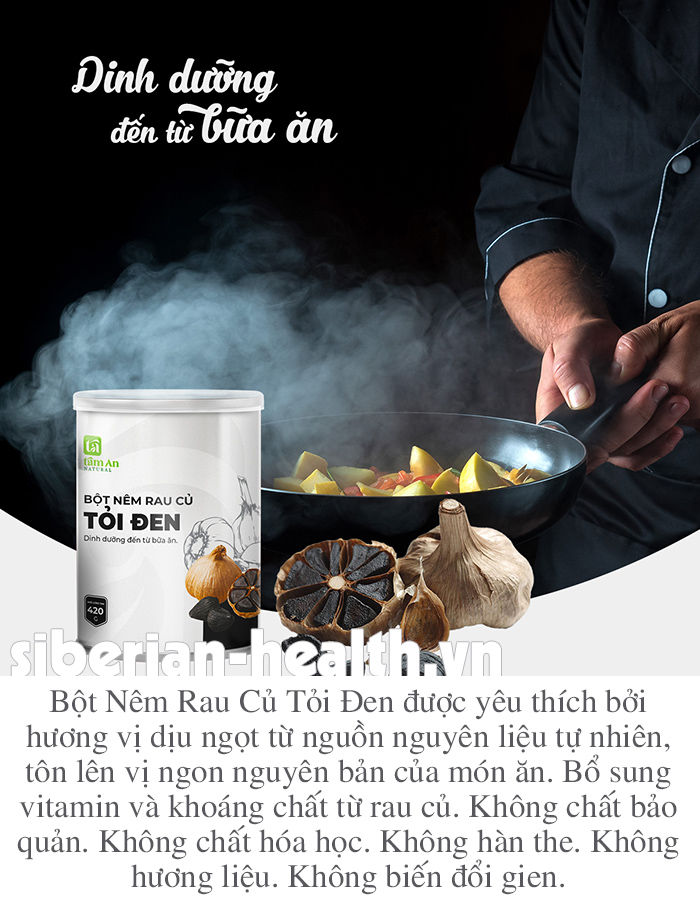 Bột nêm rau củ tỏi đen là sản phẩm được làm từ tỏi đen, cùng các loại rau củ thuần tự nhiên qua quá trình nghiền thành bột. Bột tỏi đen là sản phẩm chăm sóc sức khỏe an toàn mà không gây ra bất kỳ tác dụng phụ nào.