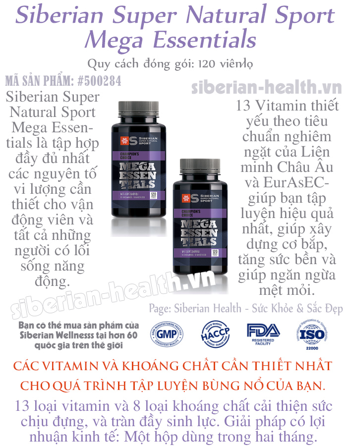 Megavitamins Siberian Wellness là tập hợp đầy đủ nhất các nguyên tố vi lượng cần thiết cho vận động viên và tất cả những người có lối sống năng động.