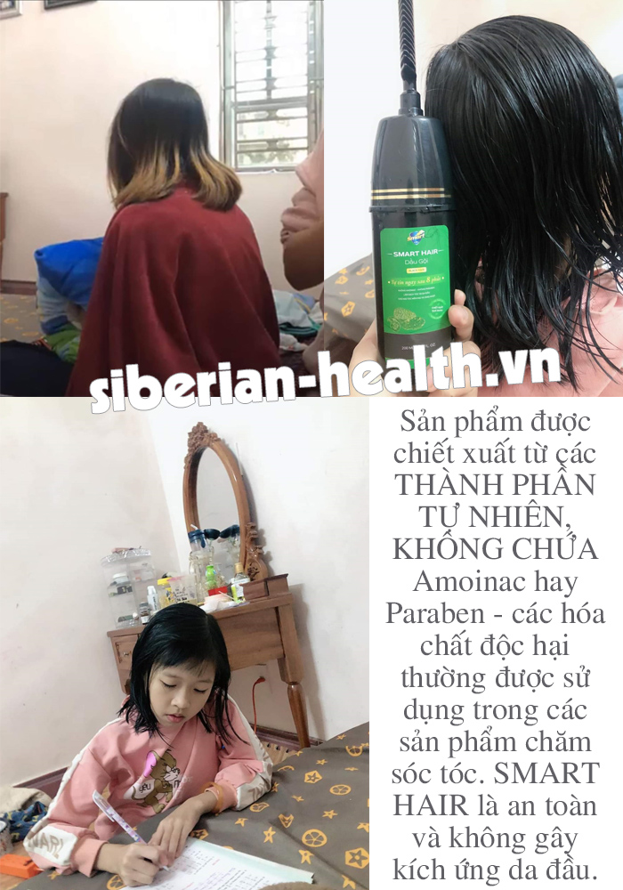 [Hàng chính hãng] SMART HAIR (màu đen). Bạn muốn có mái tóc đen tự nhiên mà không cần sử dụng các loại thuốc nhuộm hay hóa chất độc hại? Sản phẩm gội làm đen tóc SMART HAIR chính là lựa chọn hoàn hảo cho bạn! 👍 Sản phẩm được chiết xuất từ các THÀNH PHẦN TỰ NHIÊN, KHÔNG CHỨA Amoinac hay Paraben - các hóa chất độc hại thường được sử dụng trong các sản phẩm chăm sóc tóc. 👍 SMART HAIR là an toàn và không gây kích ứng da đầu.